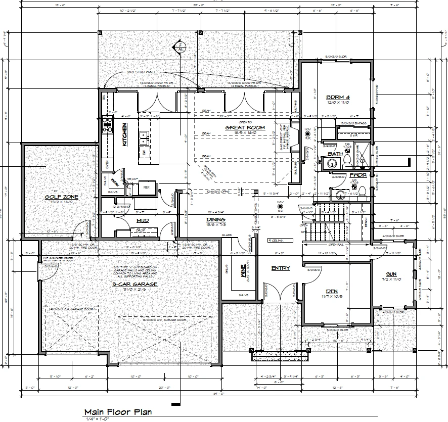 The “Cesena” is an expansive modern farmhouse with room for immediate and extended family. With a main floor bedroom with full bath, in addition to den and sunroom. Wine room with glass front next to formal dining. 2 auxiliary bedrooms up with jack-n-jill bath, bonus room and large primary suite with spa like bath. The two-story great room features faux beams creating a very rustic yet modern look. This plan was designed with the 3 car garage and a separate golf zone which could also, be a shop area. This home has a full-length front porch and large covered rear patio for all weather out door living year around. It is 3394 sqft, has 4 bedrooms, bonus, office, sunroom, wine room, 3 full baths and 2 half baths, mudroom and golf zone.