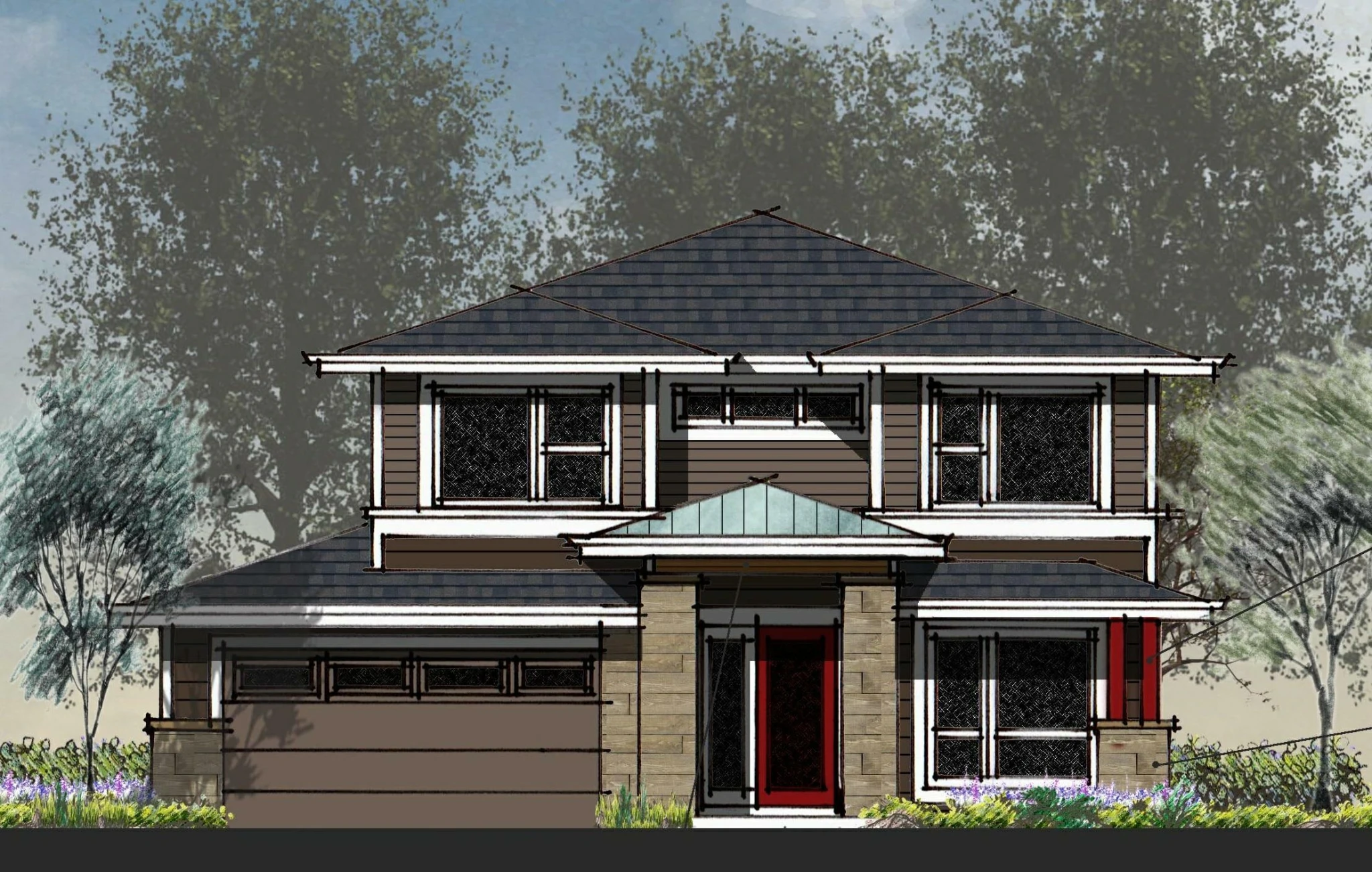 The “Cortina” offers an open concept with a modern flair and an abundance of volume and light for a great entertaining experience! Mud room with drop zone, main level Den/Bedroom next to full bath, Lounging Loft, 9’ ceilings on all floors, indoor / outdoor living.  It is a very compact plan designed for efficient use of square footage and can be easily expanded. It is 2265 sqft, has 4 bedrooms, 3 full baths, loft and mudroom.
