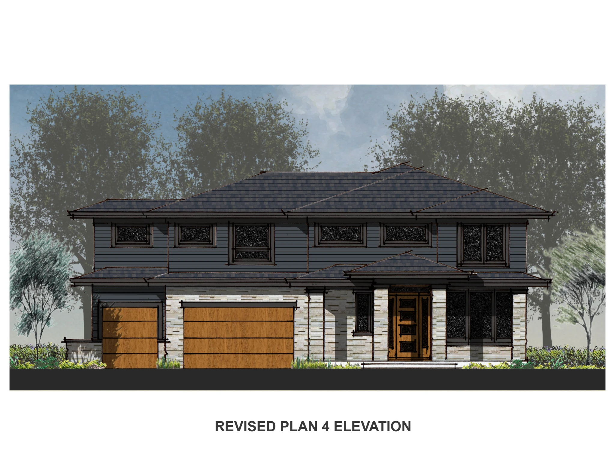The “Genoa” offers open concept living for active living. All bedrooms are upstairs with an office on the main level near entry. This design features volume and light throughout the open concept plan with high ceilings and an abundance of windows. The 15′ wide bi-fold doors off the gathering room enhance the indoor/outdoor experience. An expansive master suite features large shower in spa like bath. This plan has alternate elevations for either the Modern as it was built or a prairie modern option. It is 3544 sqft, has 4 bedrooms, 3.1 baths, office and mudroom.