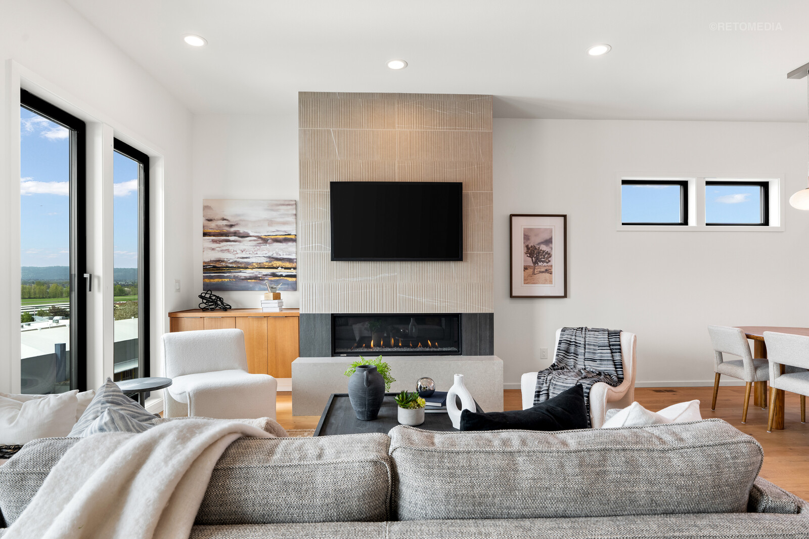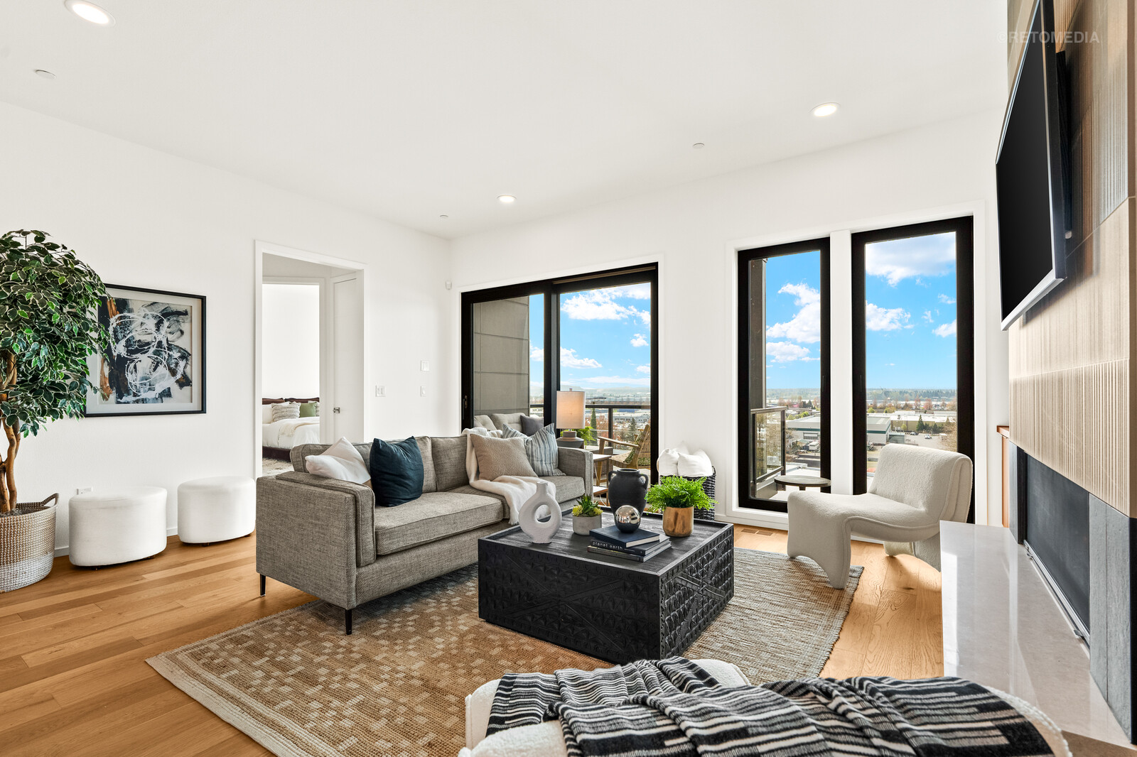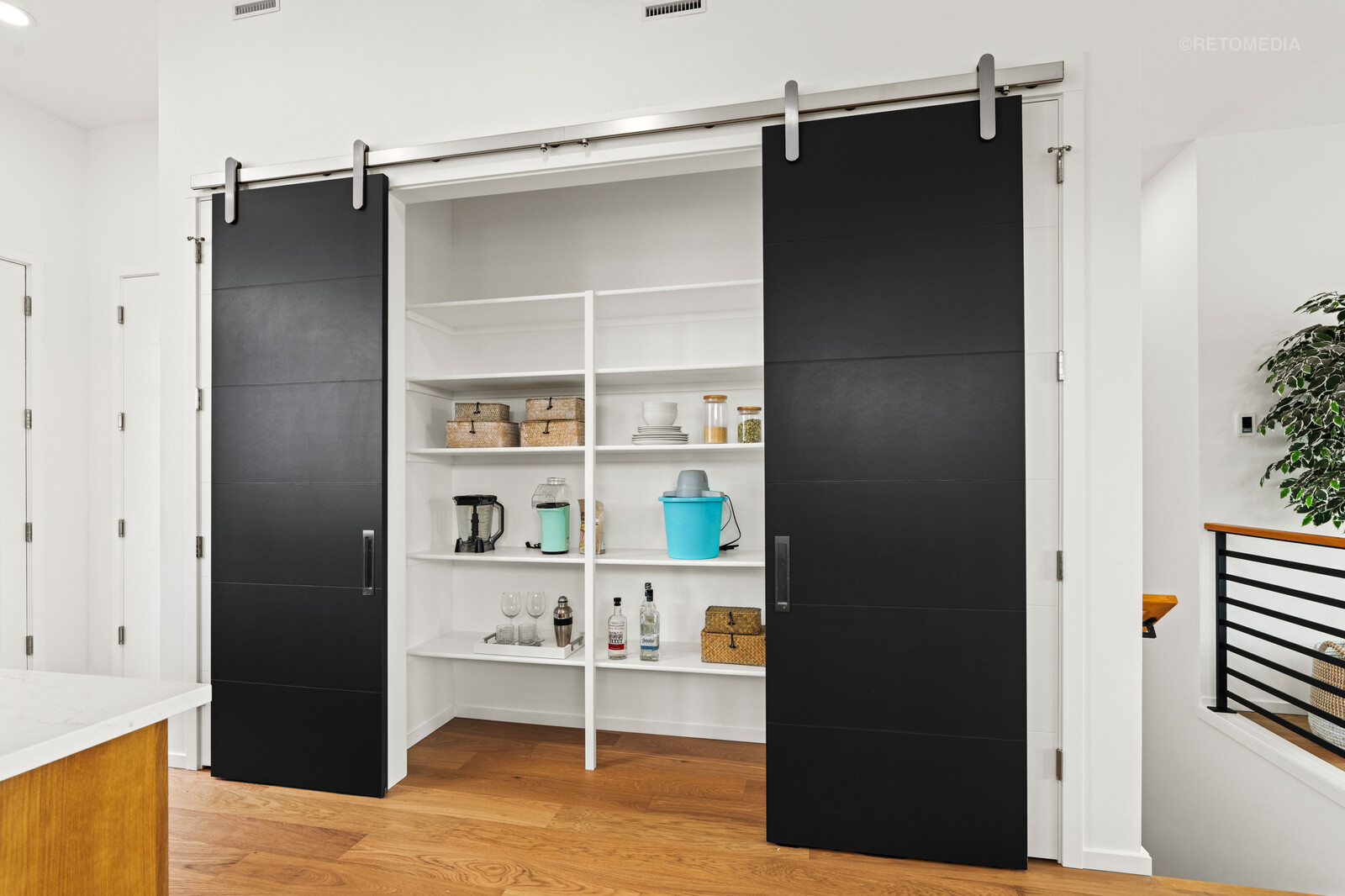 - Designer finishes throughout, including Rift Oak cabinets, barn doors with premium Krownlab architectural hardware