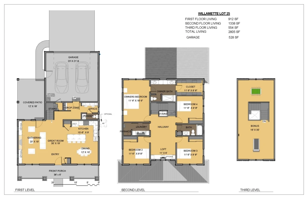 The “Willamette” was our largest plan in Meriwether. It is large but has a very cozy feel to it. Open concept plan with an abundance of windows and 9′ ceilings on all floors allowed this home to feel very light and bright. With a 3rd upper-level bonus, this creates a great opportunity to have recreation away from main living areas or a removed workspace away from the rest of the family activities. Bedroom level had a common area loft that all bedrooms opened too for additional gathering space. iSpace and drop zone off garage and bedrooms up. Covered front and rear covered patios. It was built with 2513 sqft, has 4 bedrooms, loft, bonus and 2.1 baths.